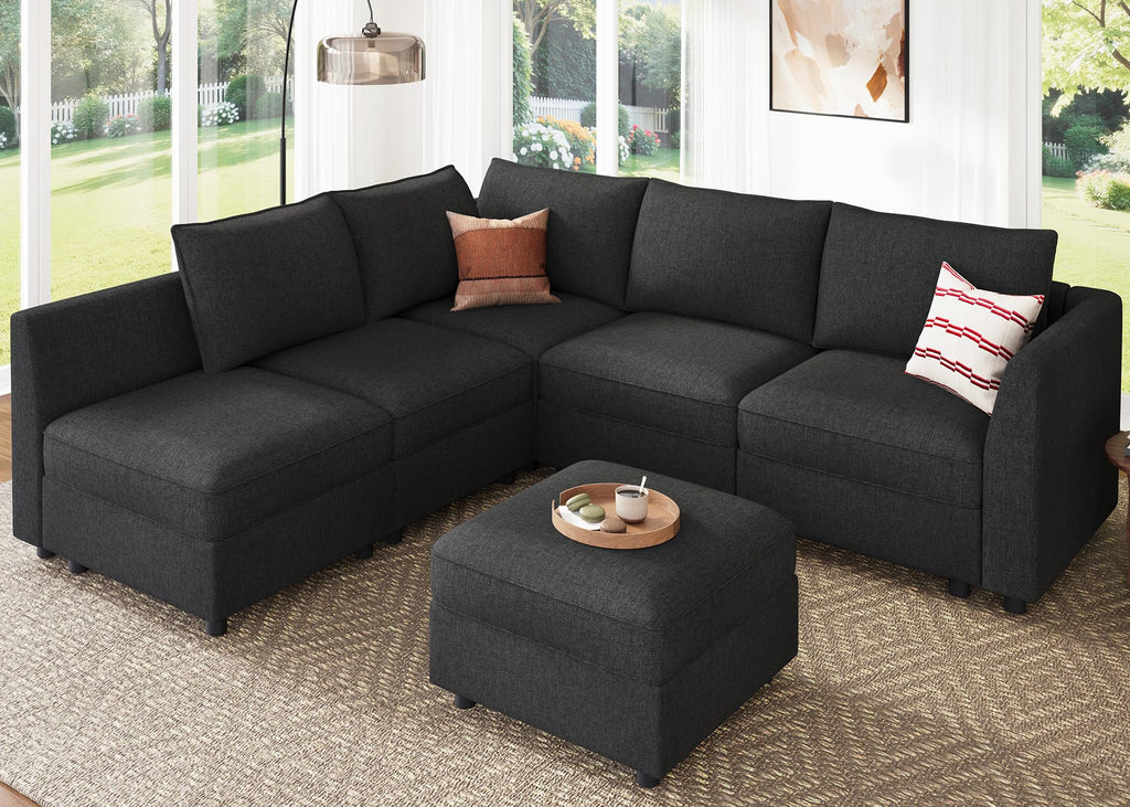 - All Storage Seat: The modular sectional sofa has a hidden storage space under each seat. Simply remove the seat cushion cover. Perfect for organizing toys, blanket or other things. keeping your living room clutter-free. Explore the ease of modular couch with storage solutions