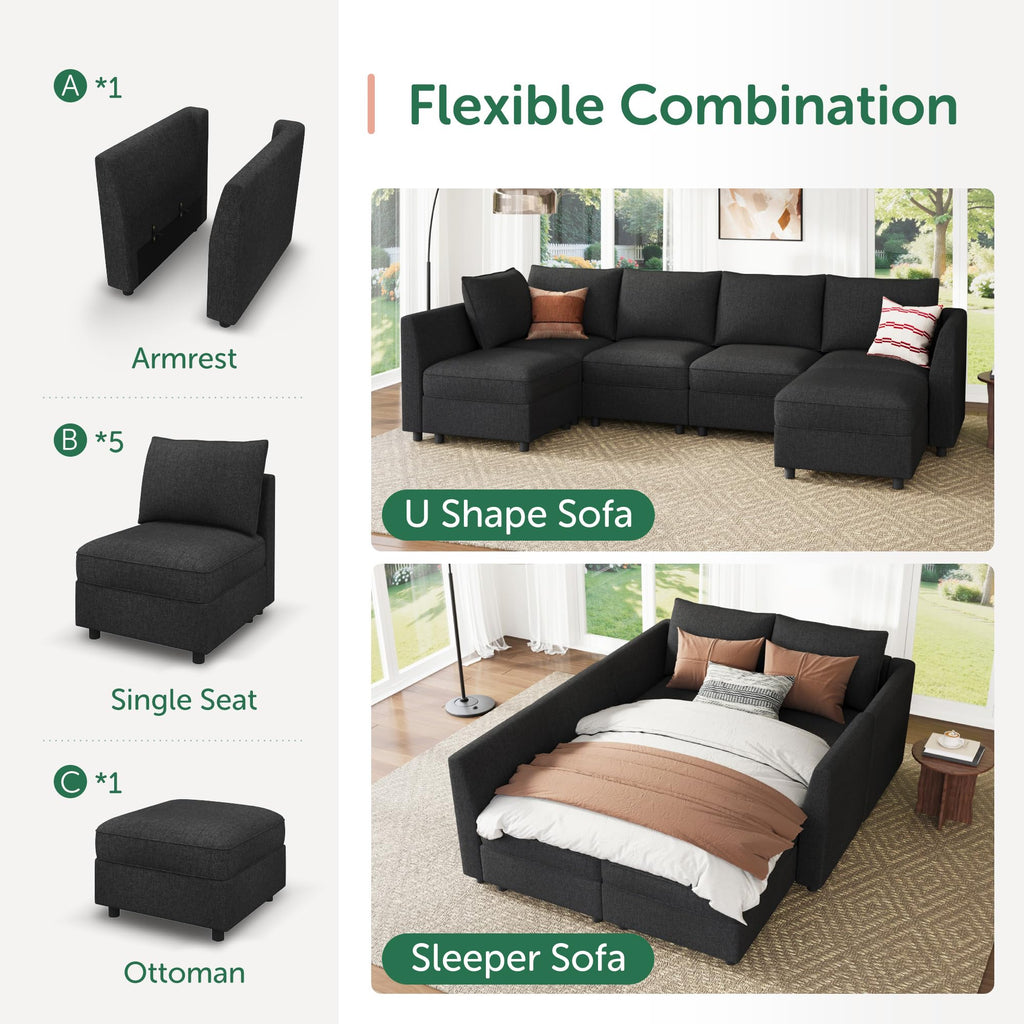 - Easy to transport and assemble: The sectional sleeper sofa consists of 7 boxes that can be passed through narrow doors and upstairs. You can easily install the sofa by following the instructions